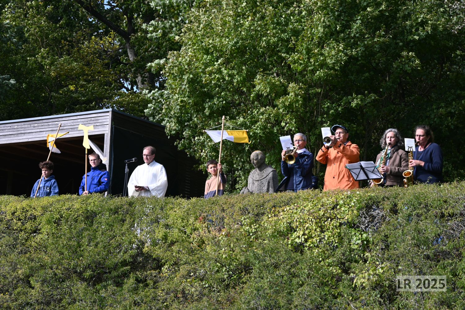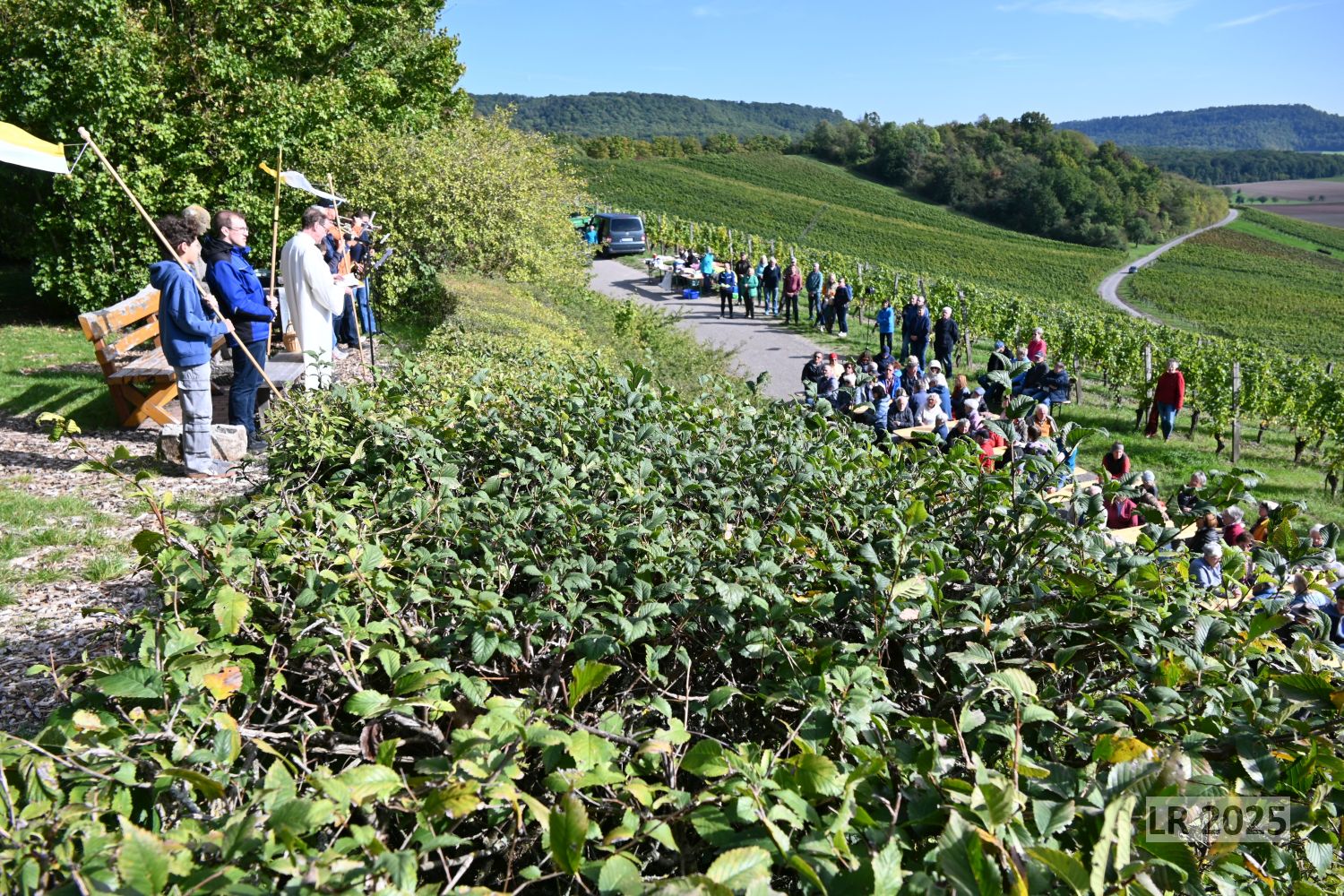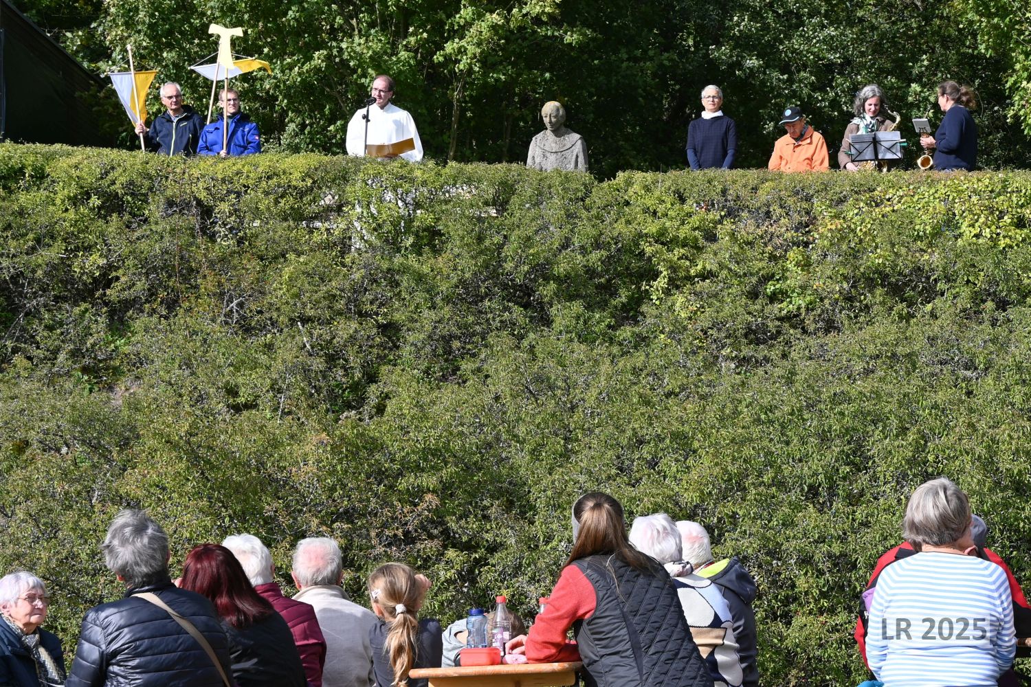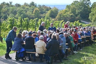 Mit rund 90 Gläubigen war auch dieses Mal die Andacht am 03. Oktober oberhalb von Wiebelsberg an der Franziskusstatute sehr gut besucht.