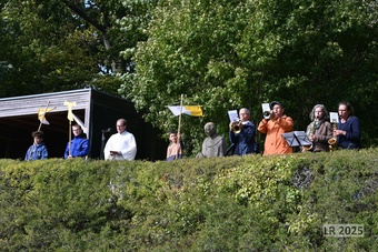Mit dem beeindruckenden Blick auf das Umland bei herbstlichem Sonnenschein ging Pastoralreferent Stephan Tengler auf den Namenspatron der Pfarreiengemeinschaft, den heiligen Franziskus (1181-1226), ein. Anhand der Legende mit dem Wolf von Gubbio wurde klar, wie sich Franziskus für Frieden und Versöhnung einsetze und was wir von ihm heute - knapp 800 Jahre später - noch von ihm lernen können. Nach der Andacht, die musikalisch von vier BläserInnen begelitet wurde, gab es noch die Möglichkeit, bei Kaffee und Kuchen ins Gespräch zu kommen.