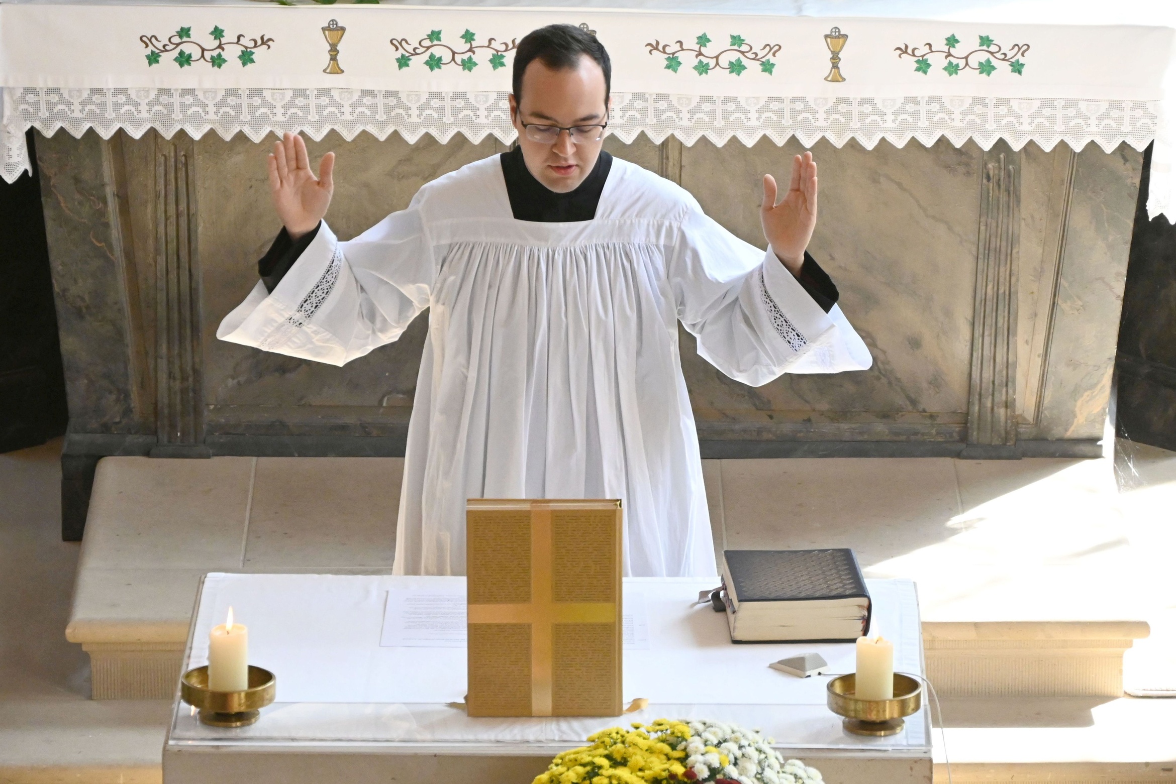 Lucas Schmitt (26) aus Schallfeld feierte am Sonntag, den 10. August, in seinem Heimatort seinen ersten Wortgottesdienst. Vor zehn Tagen hatte Weihbischof Paul Reder ihn zusammen mit Karin Back, Sebastian Back und Mia Reul in der Gerolzhöfer Stadtpfarrkirche offiziell zum ehrenamtlichen Gottesdienstbeauftragten ernannt. Das Thema seiner kurzen Predigt lautete: „Sind wir bereit auf das Kommen Jesu?“ Für die musikalische Gestaltung sorgte Kantor Karl-Heinz Sauer an der Orgel.